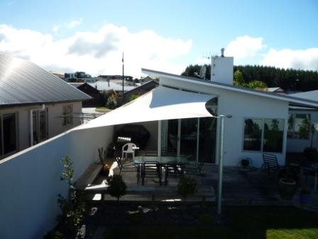 Shade sails custom made to fit large outdoor areas. Made in top quality waterproof PVC fabric or a shade mesh to suit your requirements; poles and rafters available offering a very high quality end product. Top quality Triax and stainless fittings used.